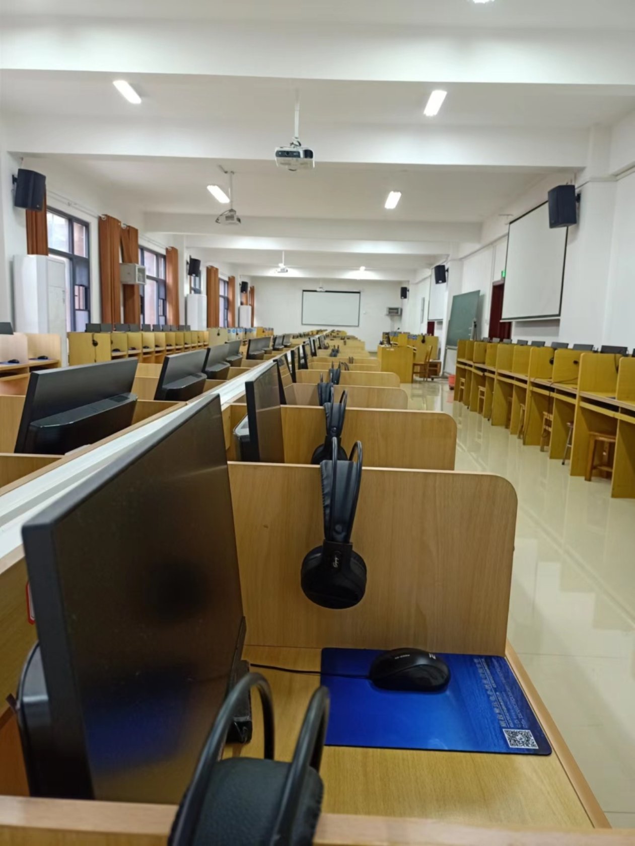实训室面积约218平方米,配有噢易一体计算机、投影仪、千兆交换机、服务器、功放音箱,噢易云桌面和电子教室系统等实验设备,提供138个机位进行实践教学活动。