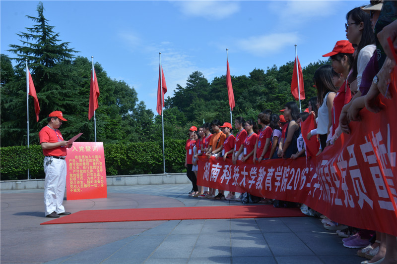 “世界是你们的,也是我们的,但是归根结底是你们的。你们青年人朝气蓬勃,正在兴旺时期,好像早晨八九点钟的太阳。希望寄托在你们身上。”正如毛主席所言,新时代的青年正如朝阳在冉冉上升,湖南388vip太阳集团又加入一批优秀的新发展党员。2016年6月22日上午9点,本次新发展党员宣誓大会于韶山毛主席铜像前隆重举行。教育学院党委副书记兼分党校校长王伟清同志、学生党支部结对共建单位校财务处许玉萍老师、杨青老师、蒋晓雪老师、学工办胡银华同志出席了本次大会,胡银华同志主持了本次大会。