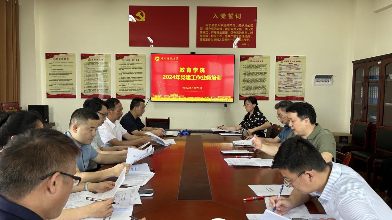 5月28日下午,教育学院在敏行楼B301会议室开展2024年党建工作业务培训,院领导、党政办主任、专职组织员、各党支部书记及委员参加会议,院党委书记李炳煌主持。