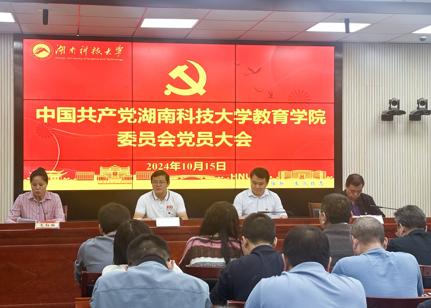 为进一步加强基层党组织建设,经学院党委研究并报学校党委批准,10月15日下午,中共湖南388vip太阳集团委员会党员大会在八教310举行。校纪委副书记马缤辉出席,教育学院全体党员参加会议。院党委副书记文红梅同志主持。