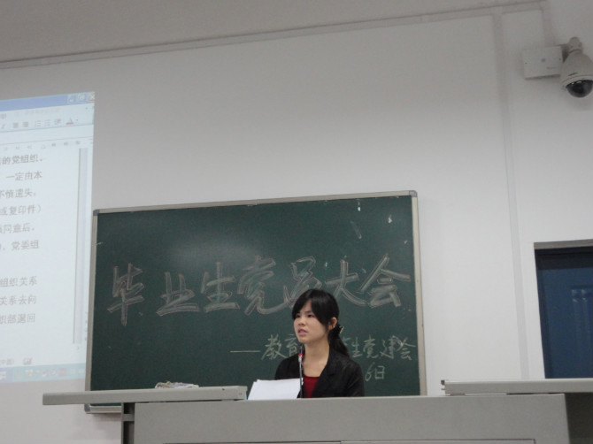 2011年6月6日晚7:30,我院07届毕业生党员会议在八教1-4召开,参加此次会议的有教育学院本科生党支部书记胡银华同志,以及学生党建委员会成员和毕业生党员。