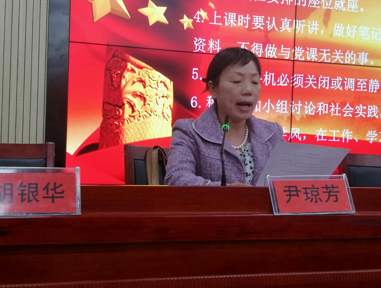 随后,尹琼芳老师向学员提出了培训班纪律要求,希望各位学员在培训期间能遵守各项规章制度,在工作、学习和生活中做先锋模范者。正式党员代表金婷发言,她强调了入党积极分子培训在入党积极分子发展过程中的重要性,并期望入党积极分子通过此次培训,在思想认识、政治觉悟、党性修养方面都能够得到提升,早日成为一名光荣的共产党员 学员张丽晶同学代表本期学员向党组织做出了“坚定理想信念,勇担时代使命,做新时代的弄潮儿”的郑重承诺。