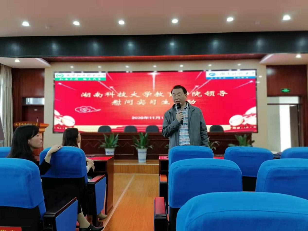 2020年11月18日下午,教育学院院长李海萍、小学教育系系主任夏永庚、教务办主任周文杰来到九华和平科大小学慰问2017级本科实习生,活动在九华和平科大小学综合楼五楼会议室进行。