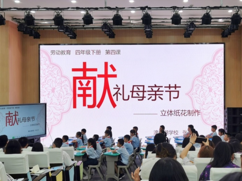第一个环节是课堂教学和班级管理经验的观摩和分享。张令令老师为大家带来了一堂生动有趣的劳动课《献礼母亲节——立体纸花的制作》。有别于传统的体力劳动,张令令老师引导学生观察花瓣的位置、形状、颜色,带领学生感受立体纸花之美,耐心地指导学生做出一朵朵美丽又有特色的纸花。最后张老师还让其中一名学生与她的妈妈视频通话,立马将这朵“新鲜出炉”的花送进妈妈心里。将劳动教育与德育、美育完美地融合在一起。