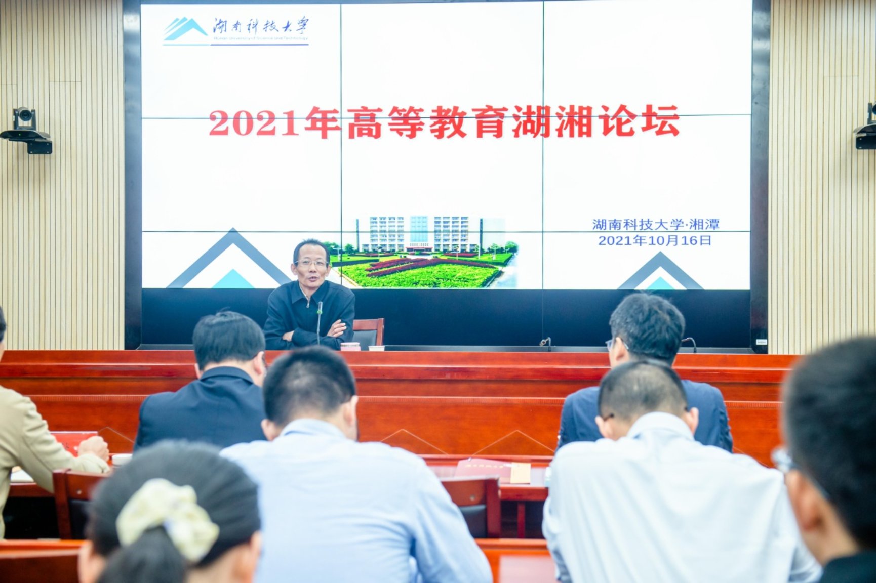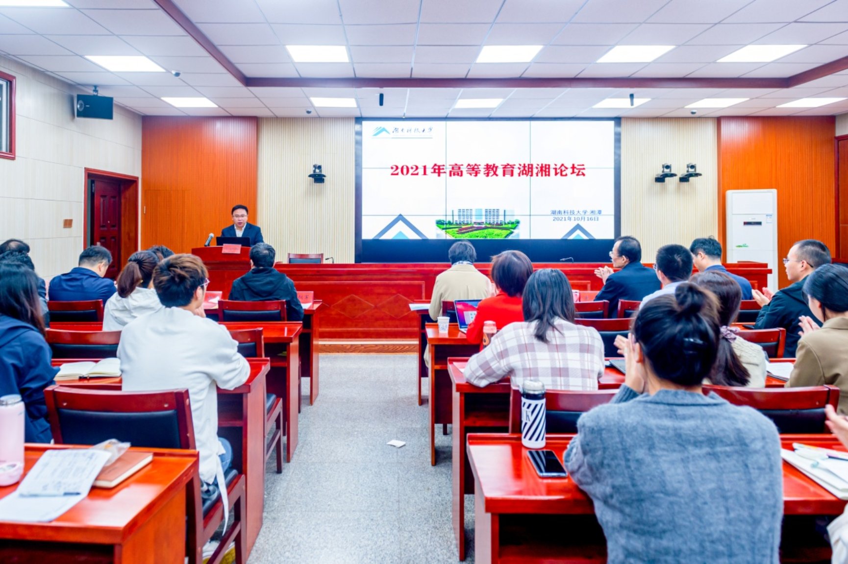 10月16日,湖南科技大学2021年高等教育湖湘论坛在教育学院308学术报告厅举行。华中科技大学《高等教育研究》副主编曾伟编审,全国教育学类专业教学指导委员会委员、扬州大学教育科学学院原院长、博士生导师陈秋苹教授,南京师范大学教育科学学院博士生导师王建华教授,湖南388vip太阳集团博士生导师彭拥军教授等应邀莅临。湖南科技大学纪委书记郭时印教授出席。论坛由研究生院院长李海萍教授主持。多所高校的教师和学生代表80余人参加此次论坛。