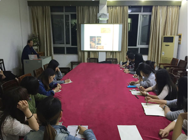 5月10日,湘潭市一中美术骨干教师郑岳湘为我校教育硕士专业学科教学(美术)方向研究生授课,授课主题为《你不知道的中小学美术教育实况》。