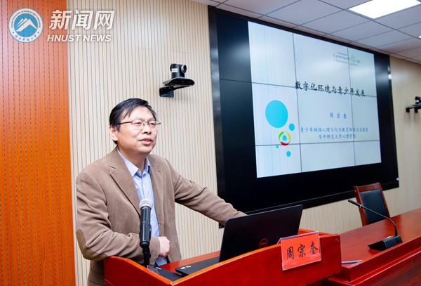 ▲周宗奎作题为“数字化环境与青少年发展”的主题报告