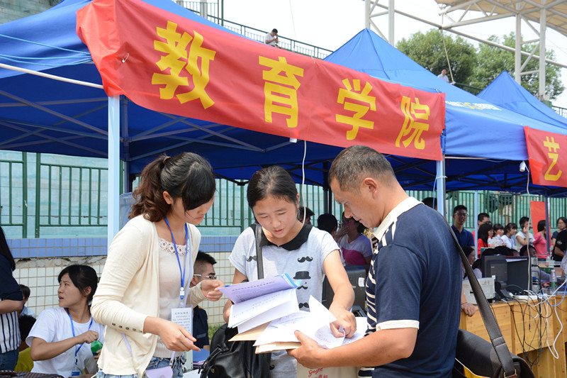 “同学,你是教育学院的吗?”“我带你到学院的服务台领取入学手册!”……