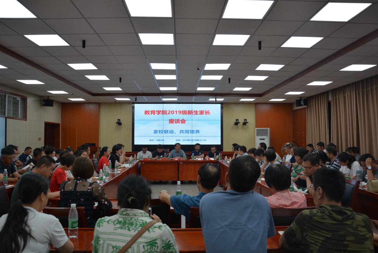 2019年9月7日晚上7:30,以“家校联动、共同培养”为主题的2019级新生家长座谈会在第八教学楼308召开。教育学院院长李海萍、党委书记李炳煌、副院长陈京军、副院长谭千保、党委副书记刘辉亚、19级辅导员尹琼芳、新生班主任老师和家长们出席本次座谈会。