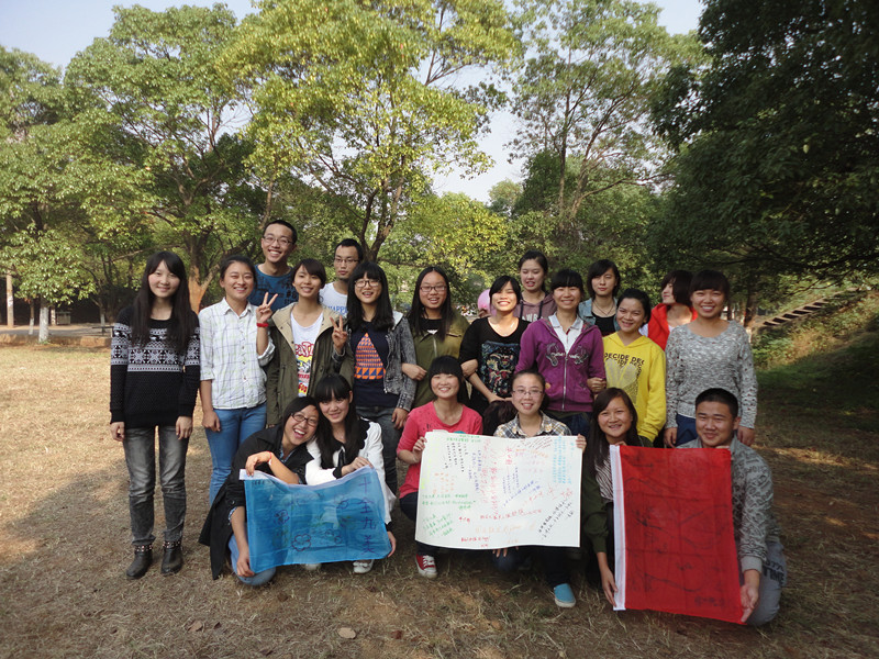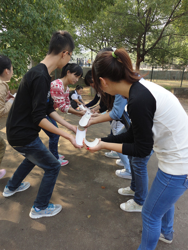 小组再分两组,组建自己的团队。队名,队形,队歌,口号,“烈火队”在接到任务之后,迅速地推选出自己的队长13级小学教育2班的杨琼霞,在其带领下,出色地完成任务,并赢得对手的肯定和喝彩。其他小组也如火如荼地开始了团队协作。
