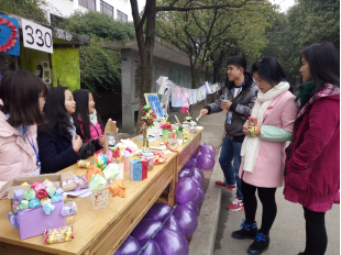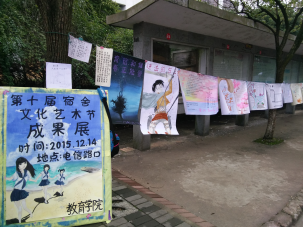 2015年12月15日,在湖南科技大学的电信路口,你的目光定被沿街缤纷的色彩吸引,你的脚步定因展示桌上精心制作的手工艺品放慢。这里正如火如荼地举行着由教育学院纪检宿管部主办的第十届宿舍文化艺术节成果展。组织本次活动的有纪检宿管部部长刘亚琨,副部长冯润、齐静雯,贺婧,以及部分纪检宿管部成员。展览从9:30进行至16:30,展览的物品都是由纪检宿管部从众多宿舍文化艺术节参赛优秀作品中选出来的精品。