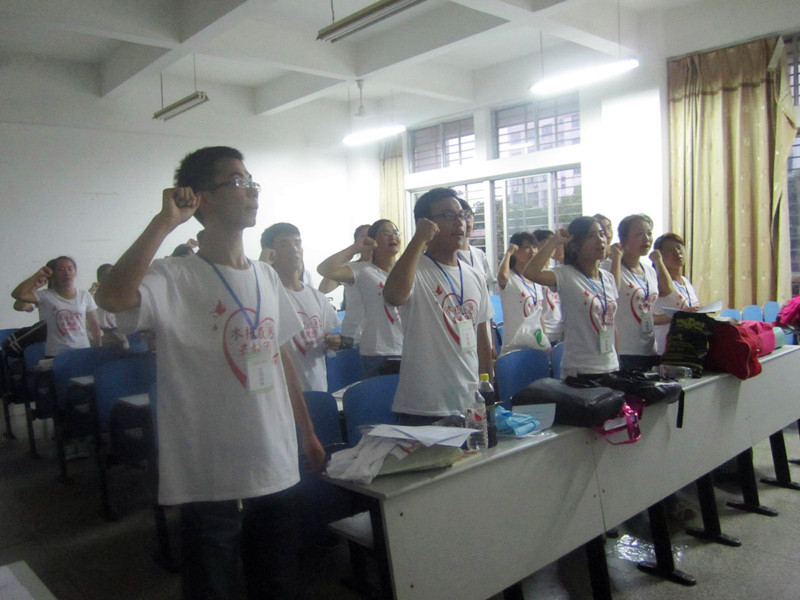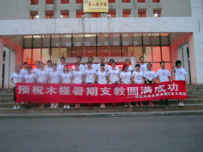 “伸出我们的双手,把爱的种子轻轻呵护,让爱的芬芳洒满天地。”2013年7月12日,湖南科技大学木槿感恩支教团“2013青春三下乡——暑期支教”社会实践活动启动仪式在第八教学楼举行,身着红色文化衫的志愿者们齐聚一堂,正式拉开了前往贵州省的暑期支教活动。