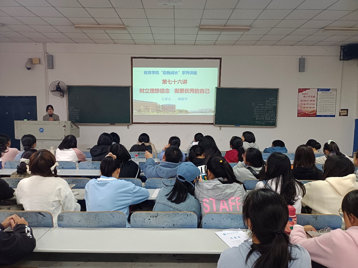 10月26日下午4:00,“助我成长”第七十六讲——21级入学教育讲座“树立理想信念 做更优秀的自己 ”在第八教学楼2-3教室顺利召开。本次讲座由教育学院21级辅导员胡银华主讲,21级全体新生参与此次讲座。