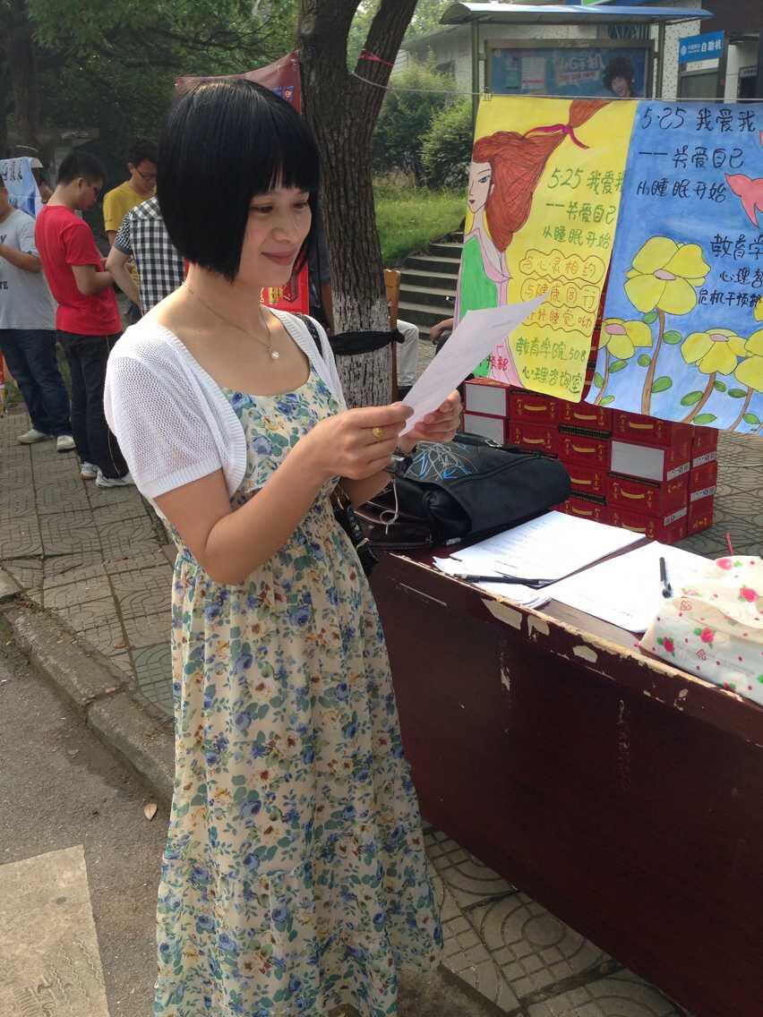2015年5月25日8时,“感恩生命,你我同行”由教育学院危机干预部联合508心理咨询室合力承办的心理健康月主题活动于在电信路口预行,以“关爱自己,从睡眠开始”切入生活,海报、心漫画、路标、评估问卷……多形式践行“终极关怀”。