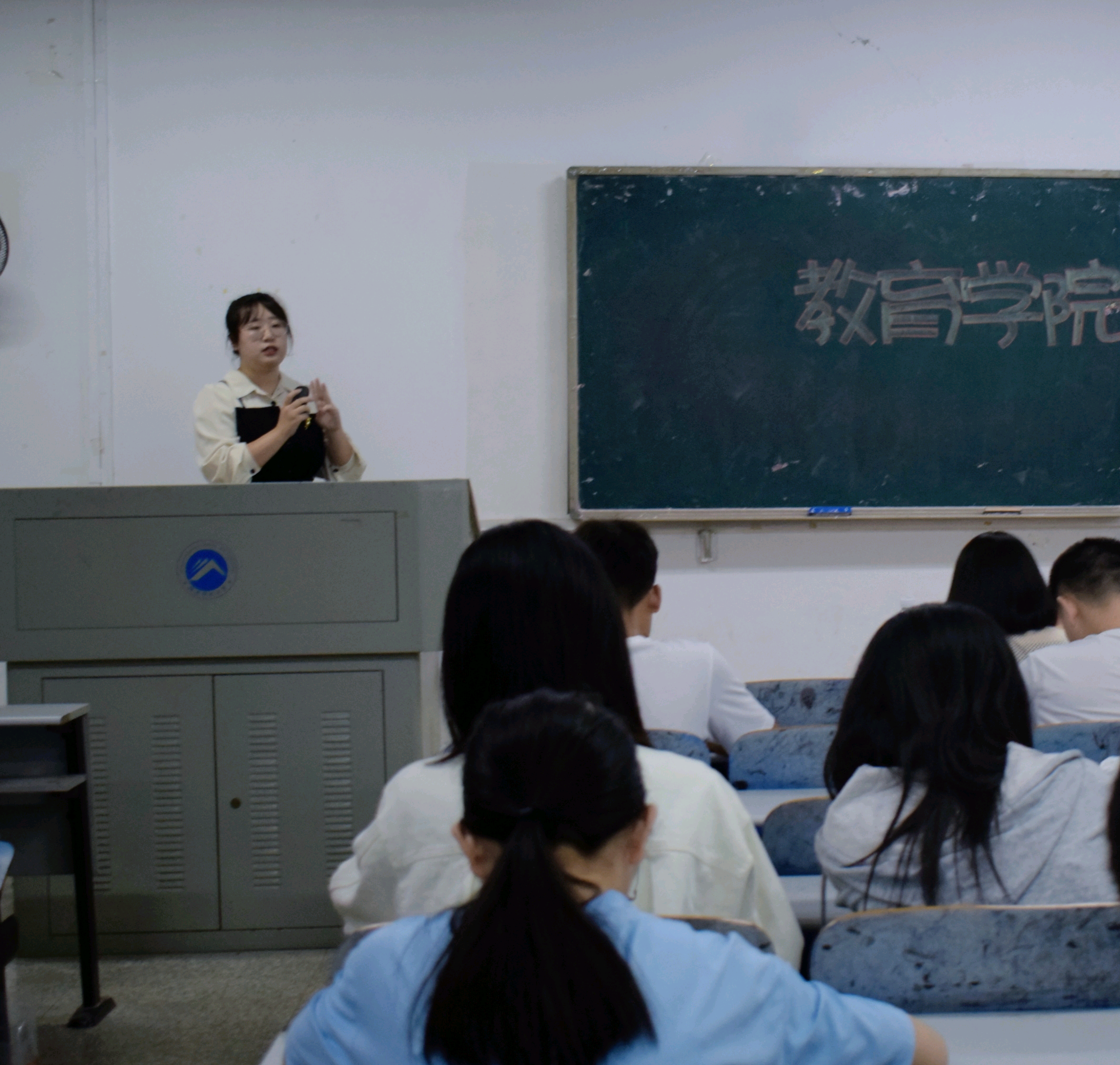 第一位分享的是来自2019级应用心理学二班的田玺如,她分别从选择题、三个科目的针对性备考和心态调节等方面展开介绍,向同学们推荐了高效有用的刷题软件,并指出了考试大致流程以及注意时间等问题。随后,2019级应用心理学一班罗静文上台介绍,她以幽默有趣的方式重点强调了教资面试中衣着形象方面易犯的一些错误,以及面试中缓解紧张的小技巧,并提醒同学们不用过度焦虑,保持良好的心态应对考试。