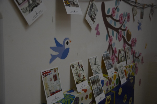 显然,同学们都对自己的宿舍进行过精心设计,素雅的墙纸,漂亮的床帘,精致的小饰品将宿舍装扮的简洁大方、清新典雅,弥漫着书香气息;还有的宿舍贴上了寝室成员大合照、心愿、祝福,再配上宿舍温馨的装扮,给人带来家的温暖。除此之外,精美的室徽,严谨的寝室公约也是此次寝室文化节的一大亮点。贴纸,彩帘,气球等饰物令人仿若置身晚会现场,而别具一格的留言板,卫生角,记忆墙等细节也让人眼前一亮,更有女生用心折出来的千纸鹤,纸星星点缀其间,尽显准备之精心。其中涌现出许多不俗之作,譬如女生宿舍112匠心独运地用酷似墙砖的壁纸营造出浓浓的复古风情,配合恰到好处的几种乐器,自成一家,获得了滕老师及团委学生会干部的一致好评。而男生宿舍411则另辟蹊径,在一片贴纸的海洋中举起了剪纸的大旗,自信地向滕老师及各干部介绍着纯手工制作的,以大型钢琴剪纸为主体的一系列繁复的剪纸作品。其真诚给人留下了深刻的印象。同学们的设计作品百花争妍,各有千秋。尽显院学子卓越的设计才华和过人的艺术素养,着实令滕老师惊叹不已。