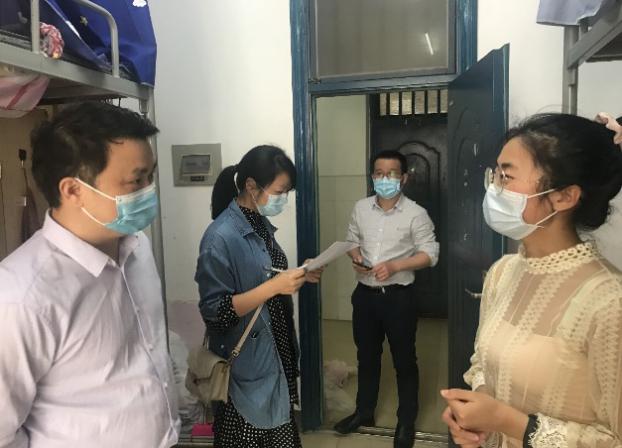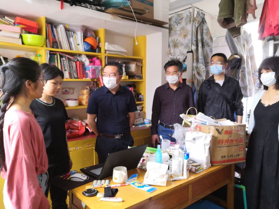 5月13日上午,学院党委书记李炳煌、副院长谭千保、副书记刘辉亚等领导带领全体辅导员分别前往本科生和研究生宿舍看望返校学生,详细了解学生返程详情、心理动态考研究复试和就业情况,并特别强调疫情防控期间,要严格按照学校要求做好自我防护和每日两次自我检测工作同时鼓励学生克服困难、努力学习、积极就业。