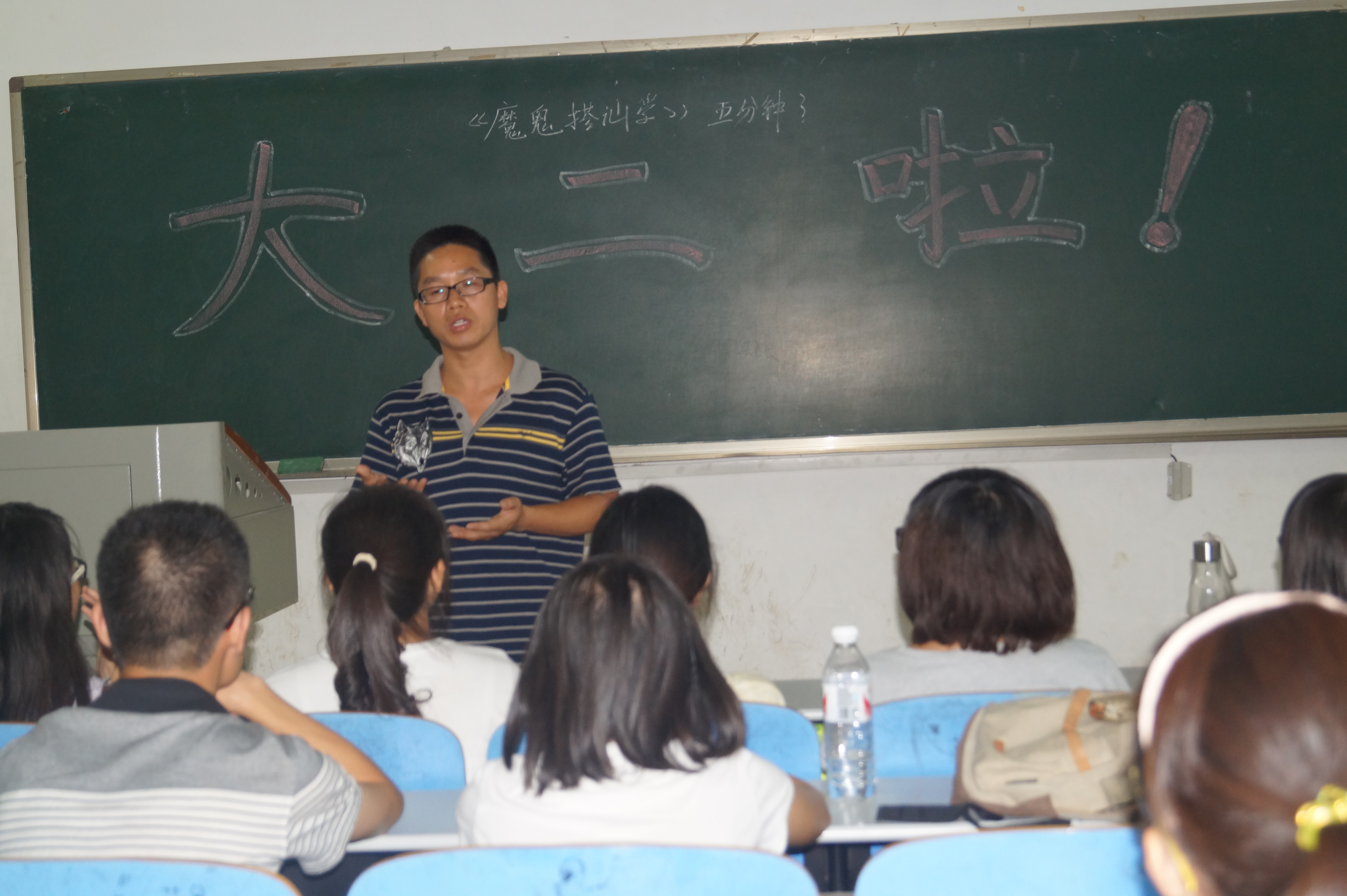 “我之前很害怕去一些一线城市,现在我25岁,在广州工作,你们的经历唤起我当年的记忆,我由衷的钦佩你们,能够在年轻的时候去做自己喜欢做的事。”坐在教室最后一排,来自郴州的小学老师蒋美晨被同学们讲话感动,上台分享自己曾经的大学生活。 最后,王老师从心理学专业就业前景、学生的生活安全、树立理想与目标,珍惜大学生活等多个方面进行总结。班会在一片浓浓的家的氛围中结束。