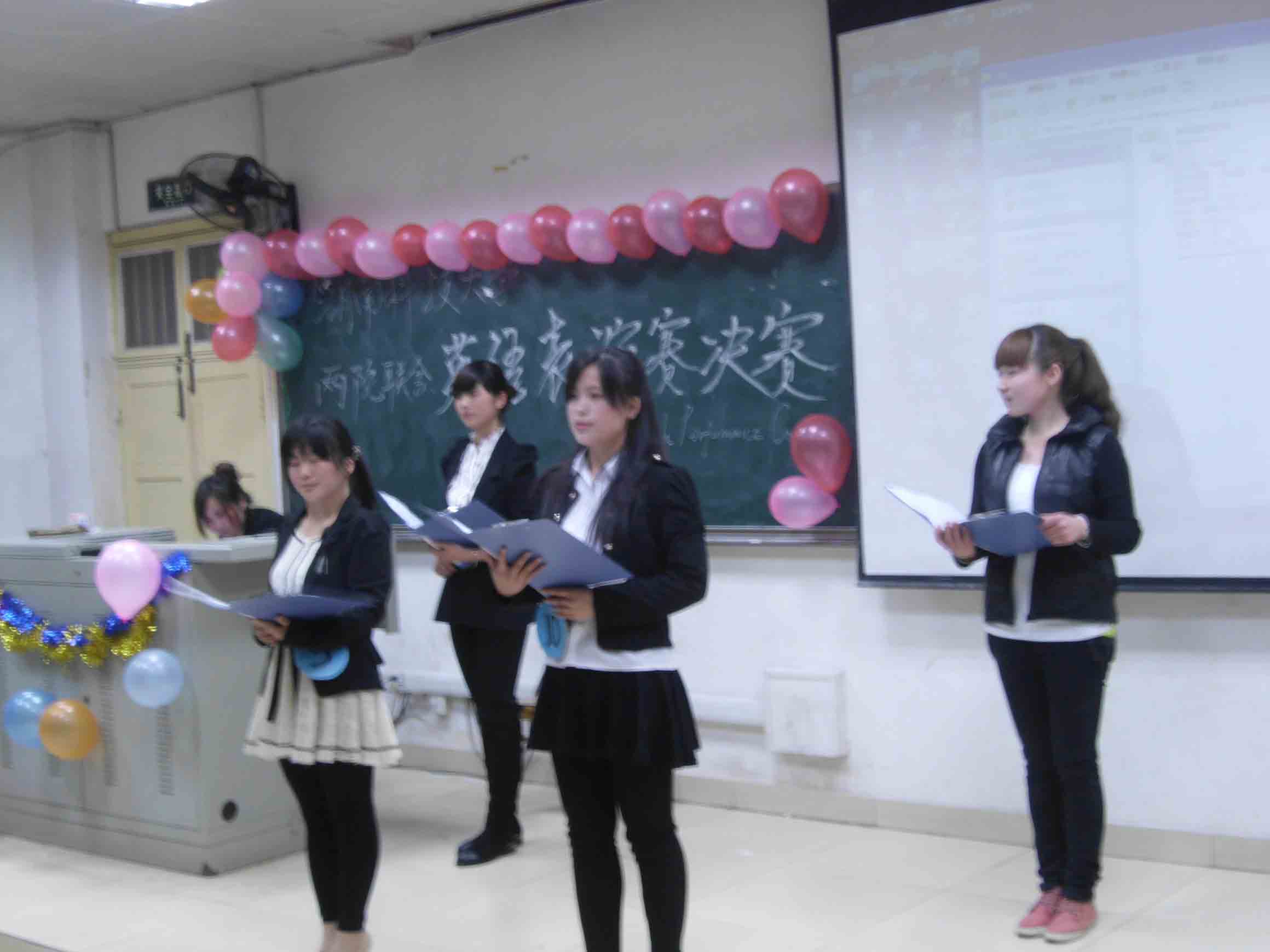 3月29日晚七点,教育学院和生命科学学院联合主办的英语表演赛决赛在十教附一102举行,由生命科学学院柳媛慧、任月方老师、教育学院李爱华、何辉英老师担任此次英语表演赛的评委。