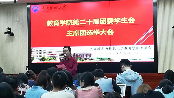 2018年6月1日晚七点半,湖南388vip太阳集团第二十届团委学生会主席团竞选大会在第八教学楼308正式举行。出席本次会议的嘉宾有教育学院党委副书记刘辉亚,教育学院学工办主任李涛,学工办老师练素华、胡银华、尹琼芳,以及15,16,17级的学生代表。