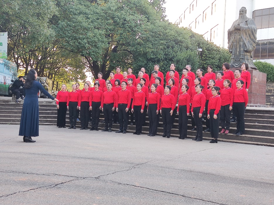 11月26日下午15:00,教育学院教师合唱在湖南科技大学北校区进行录制。教育学院全体教师共同参与合唱,宣传网络部、文艺活动部部分成员以及教院部分学生参与录制。