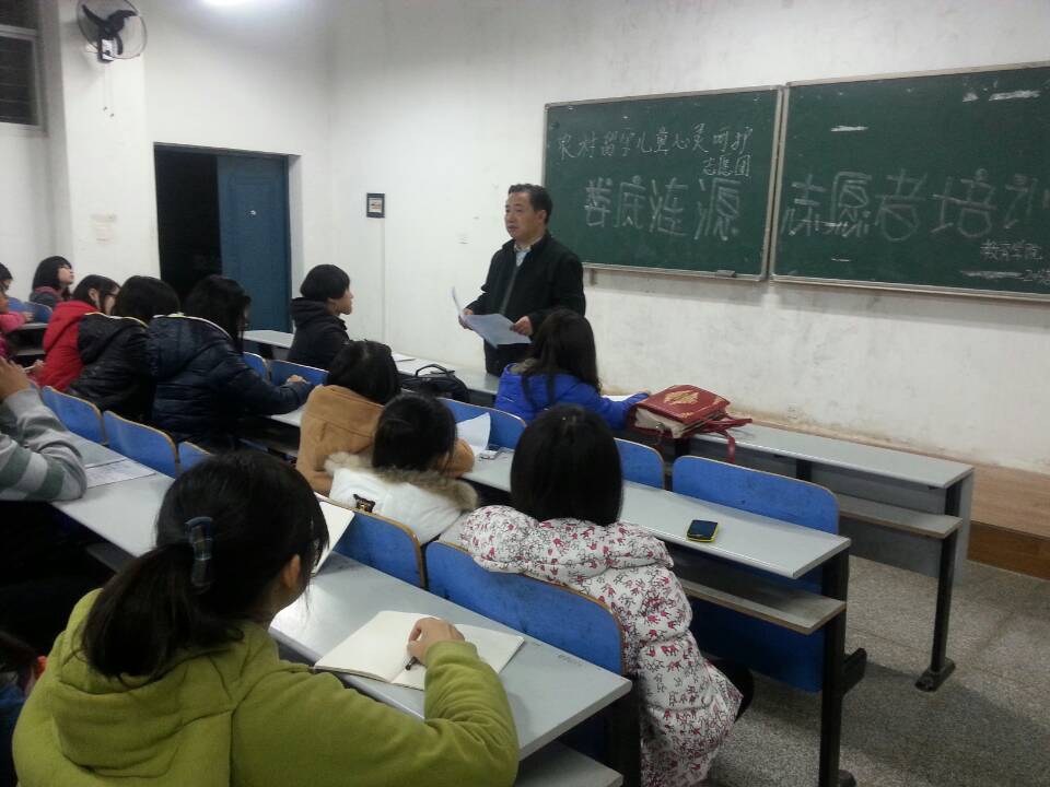 11月21日晚,我院农村留守儿童心灵呵护志愿团,“娄底涟源”志愿者培训在八教1—6举行,本次志愿活动将深入娄底涟源塘湾中学,对近400名的留守、半留守儿童,进行为期一天心灵关爱志愿活动。