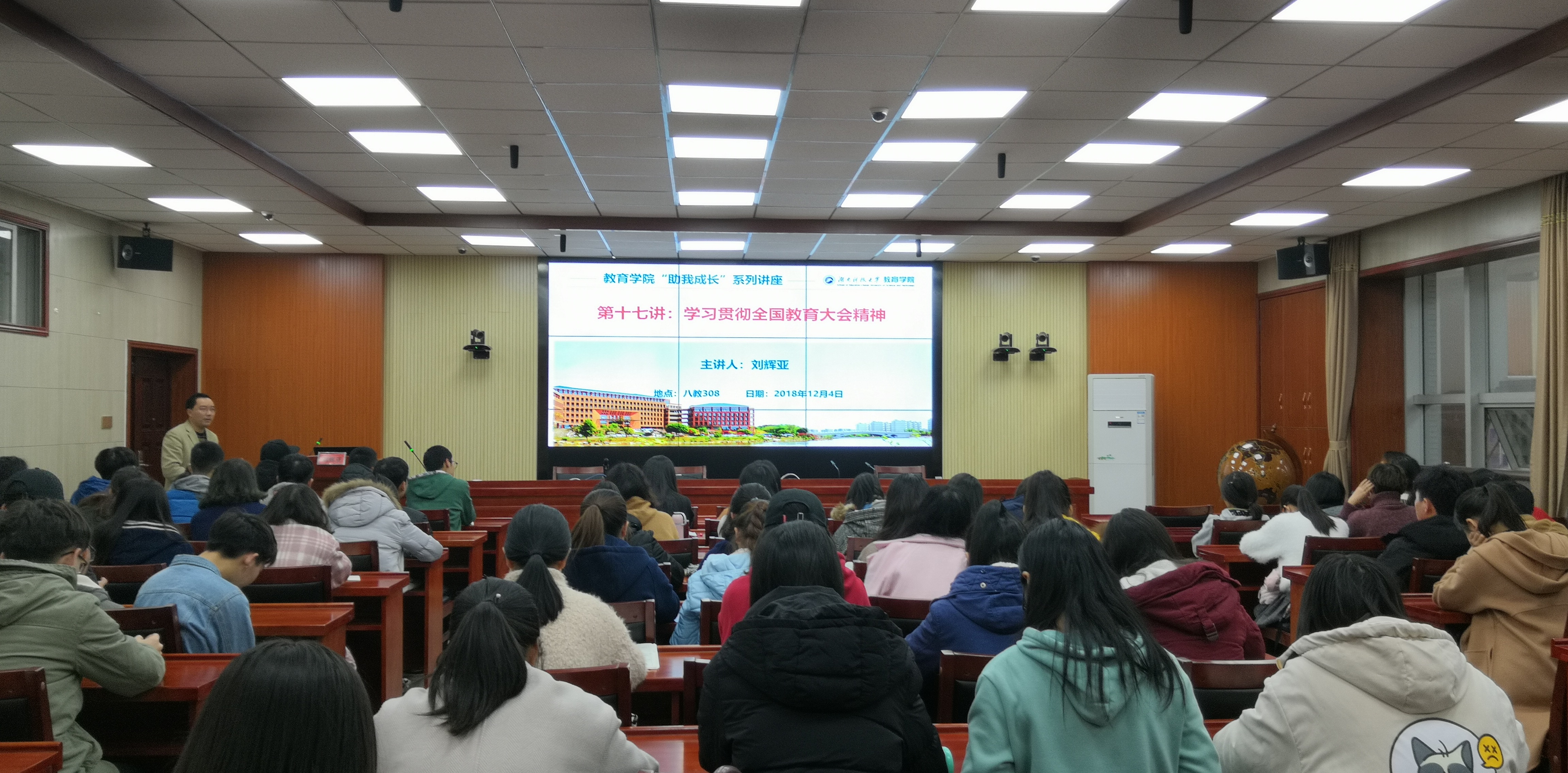 2018年12月4日16:20,我院在第八教学楼308会议室开展以“纪念毛泽东诞辰”和“传达全国教育大会精神”为主题的第八期青马网络班培训暨学生干部培训大会,由教育学院党委副书记刘辉亚以及团委书记练素华老师主讲,所有青马网络班学员参加。
