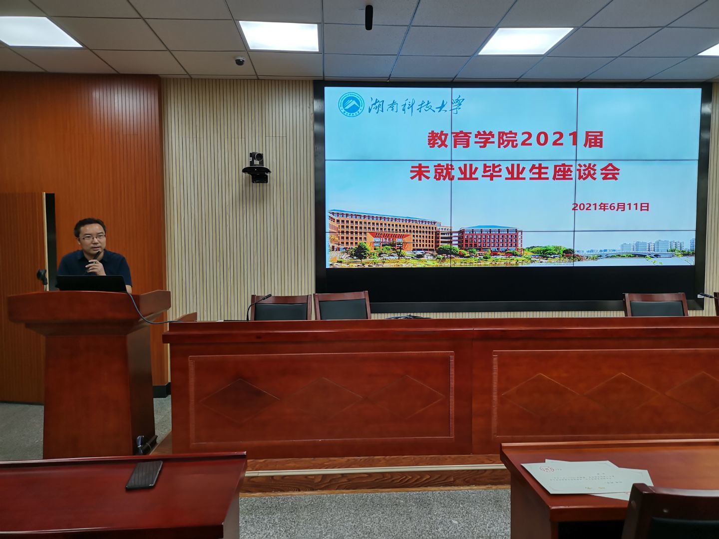 为进一步提高毕业大学生就业意识,增加我院毕业生就业率,6月11日下午16:00,教育学院在第八教学楼308会议室召开2021届未就业毕业生座谈会。教育学院党委副书记刘辉亚、辅导员胡银华出席会议,2021届部分毕业生到场参加。