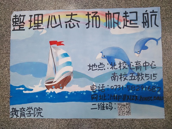 您所在的位置: 首页» 学生工作» 日常管理 整理心态 扬帆起航 时间:2014-10-17 00:00:00 为了让14级新生尽快适应大学新生活,融入集体,我院危机干预部积极宣传,开展了以“整理心态,扬帆起航”为主题的海报宣传工作,以期新生调整心态尽快适应大学生活的节奏。