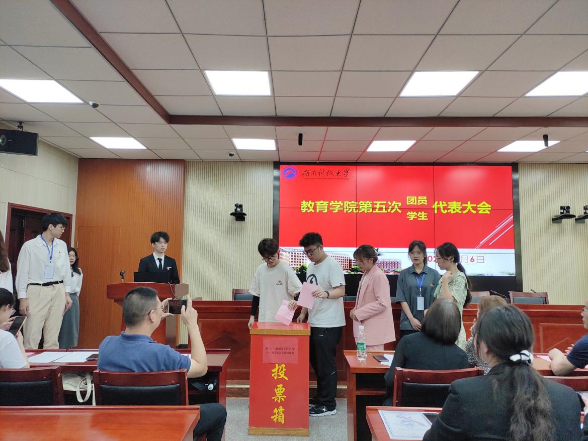 6月6日上午9:00,共青团湖南388vip太阳集团委员会第五次团员代表大会、湖南388vip太阳集团第五次学生代表大会在第八教学楼308会议室举行。会议由执行主席霞天佑主持,教育学院党委副书记刘辉亚、团委书记练素华、学工办主任李涛、辅导员胡银华、尹琼芳出席本次会议,学生会各部门部长及各年级学生代表到场聆听。
