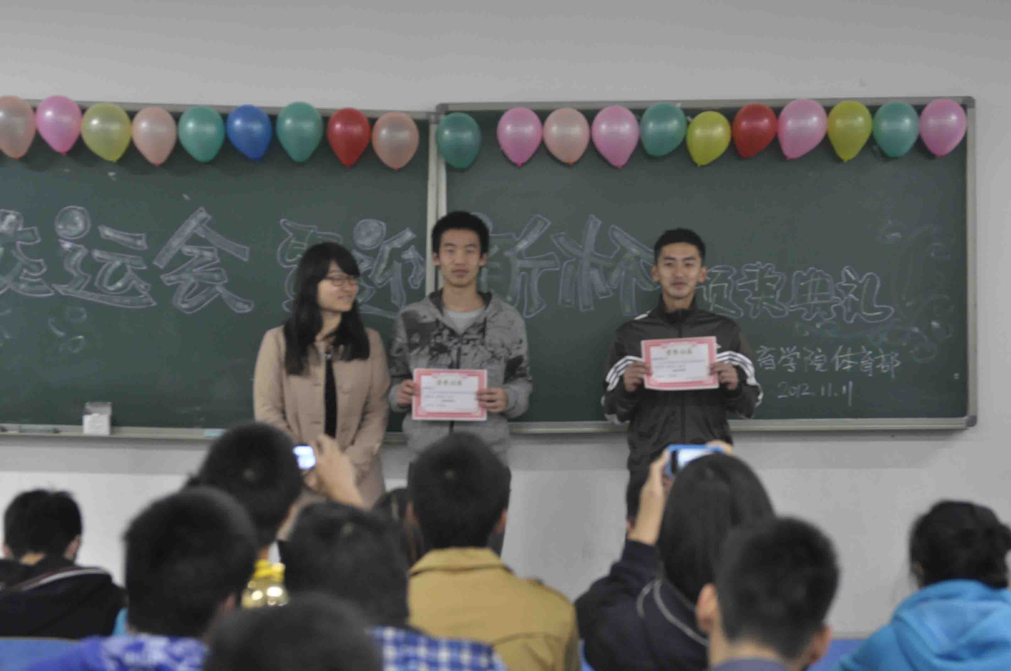 首先颁发的是“迎新杯”篮球赛系列奖项,之后颁发的是校运会奖项,分别是最佳拉拉队奖、优秀参与个人奖、院级和校级优秀运动员奖。最后颁发了“团体总分第四名”、“体育道德风尚奖”的锦旗给予体育部,这也是我院这届校运会所取得的光辉成绩。
