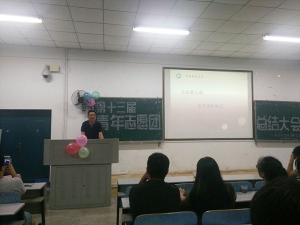 2016年 6月28日19:30,湖南388vip太阳集团第十三届青年志愿团总结大会在第八教学楼2-3举行,旨在带领大家一起回顾这一年志愿路上的点点滴滴。莅临本次大会的嘉宾有学工办主任李涛老师,学生会主要负责人贺婧、兰心宇、范乐佳,学生会副主席甘露、郝显露,校、兄弟志愿团的负责人以及第十三届团干和志愿团的所有成员们。