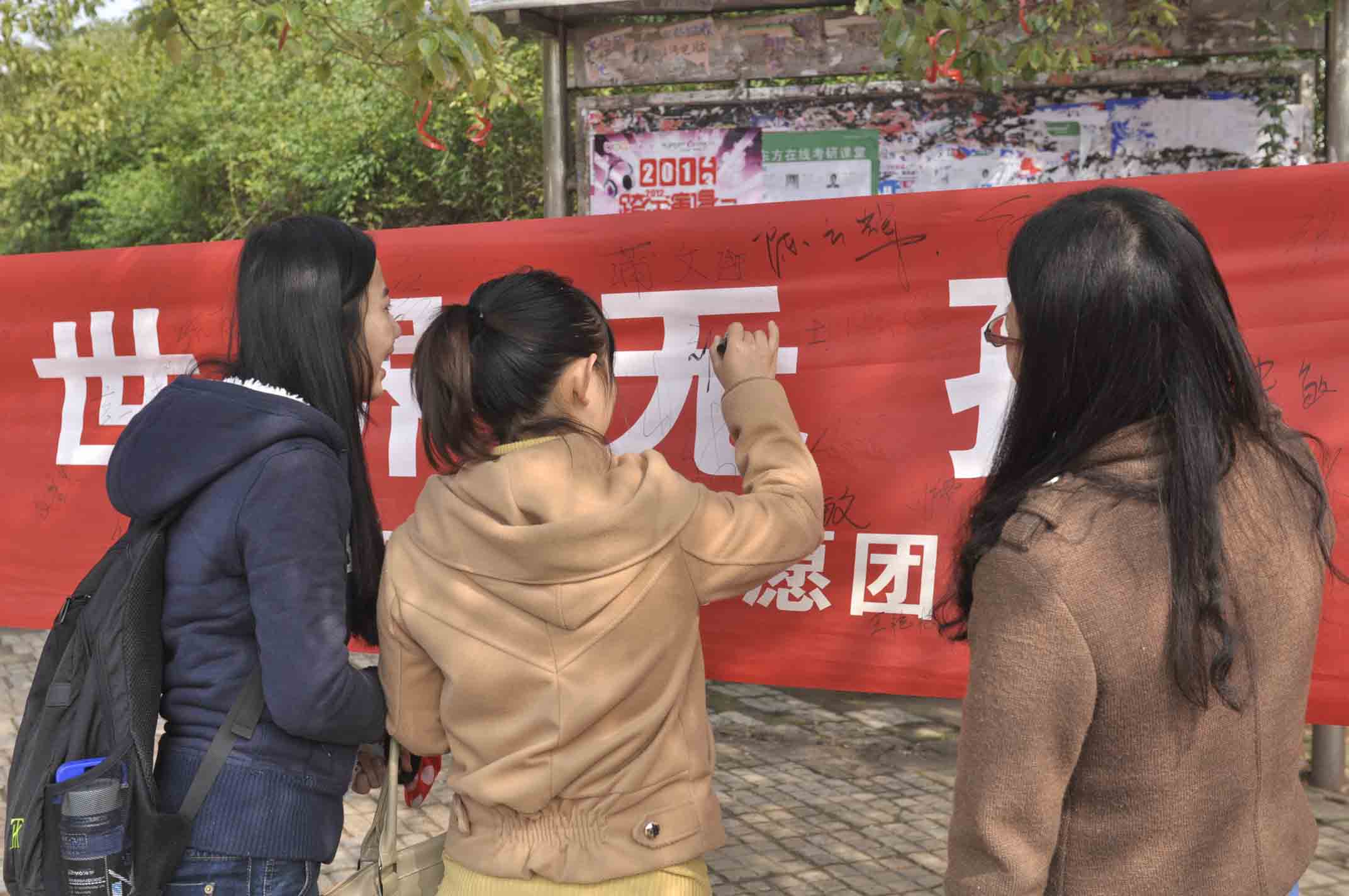 2012年12月5日,又是一个国际志愿者日,为了迎接这个特殊的日子,各个学院的志愿团早早做好了准备在电信路口开展各自具有特色的活动。教育学院青年志愿团也是其中最具有吸引力的一个,为金园培智学校的自闭症儿童筹集捐款和义卖成为了这次活动的主要目的。志愿者们积极工作,热情的向路人推销义卖物品,现场气氛十分活跃,引来路人纷纷前来。