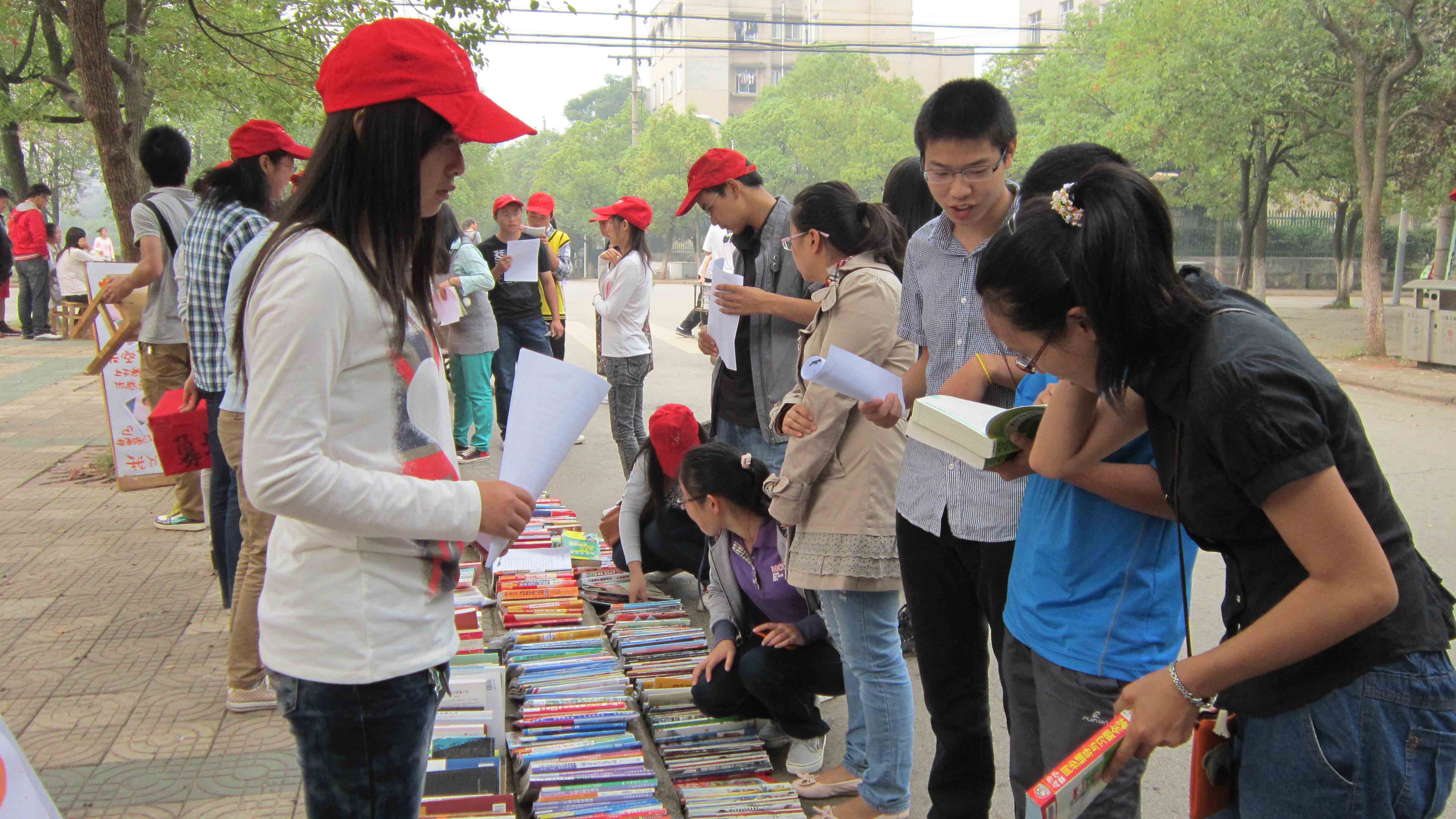 “阳琼今年暑假在车祸中意外确诊为脑动脉瘤,8月下旬进入湘雅医院进行治疗,但手术过后却留下了单侧肢体不能动弹的短期后遗症。她的父亲患有高血压和支气管炎等病痛,母亲则因早年车祸导致脑萎缩,基本丧失劳动能力,家庭经济极其困难······”听到喇叭中的这些声音,路过募捐地点的同学们纷纷伸出援助之手,将善款放进募捐箱中,“没带多少钱,但希望这些钱能帮到她”。  电信路口是图书义卖地点,所有的书籍都是志愿者们前期逐一下寝室从同学们那里收集而来,并被分好类放在各自的区域,价格均在10元左右,可谓物美价廉,可是大多数同学都热心地以该书最高价格买下自己喜爱的书籍,不仅是为了一本书,更是为了能够帮助这个同学。