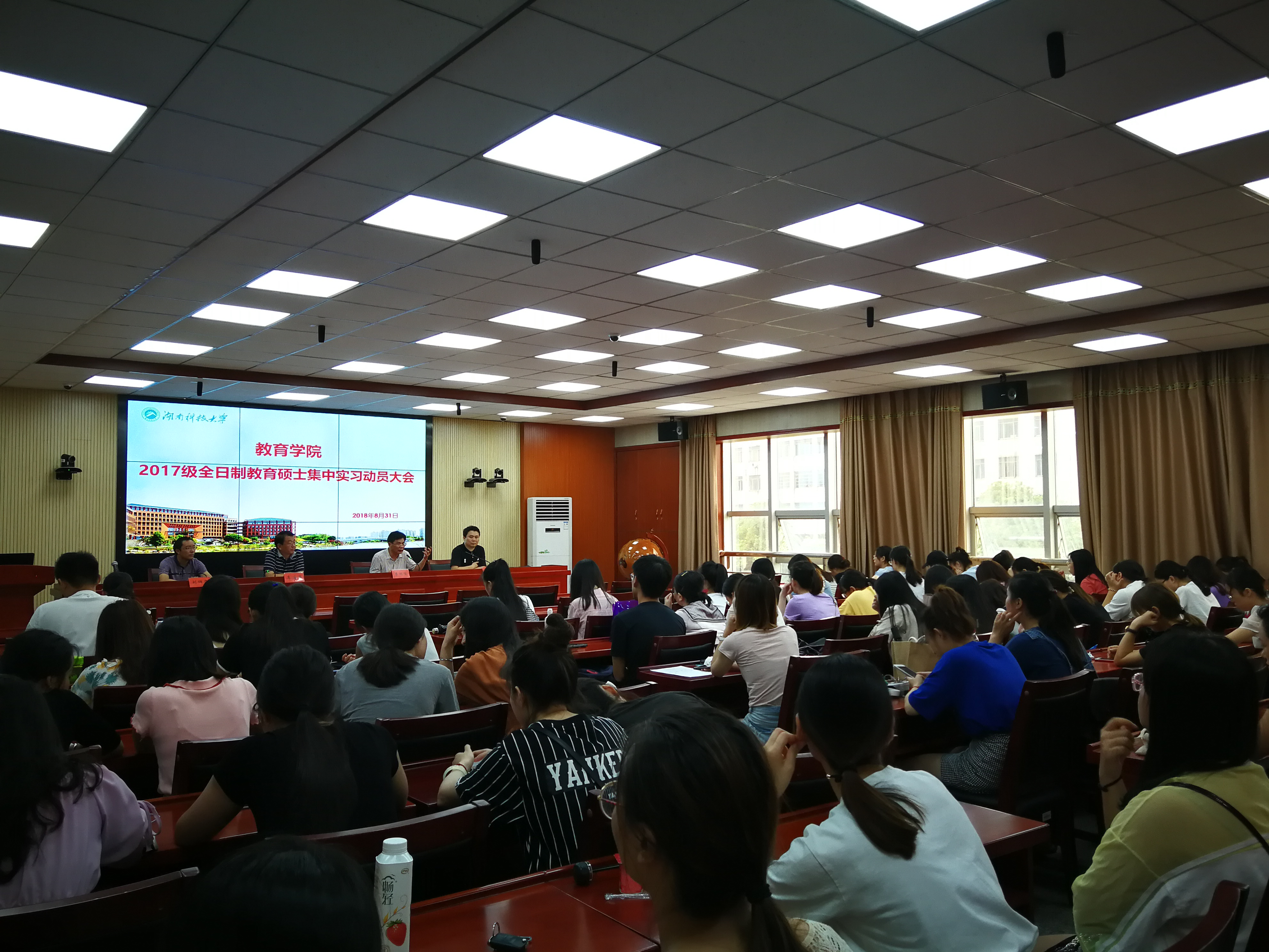 2018年8月31日,教育学院2017级全日制教育硕士专业学位研究生集中实习动员会在第八教学楼308室召开。教育学院院长李海萍、副院长谭千保、党委副书记刘辉亚出席。会议由教育学院党委书记李炳煌主持。