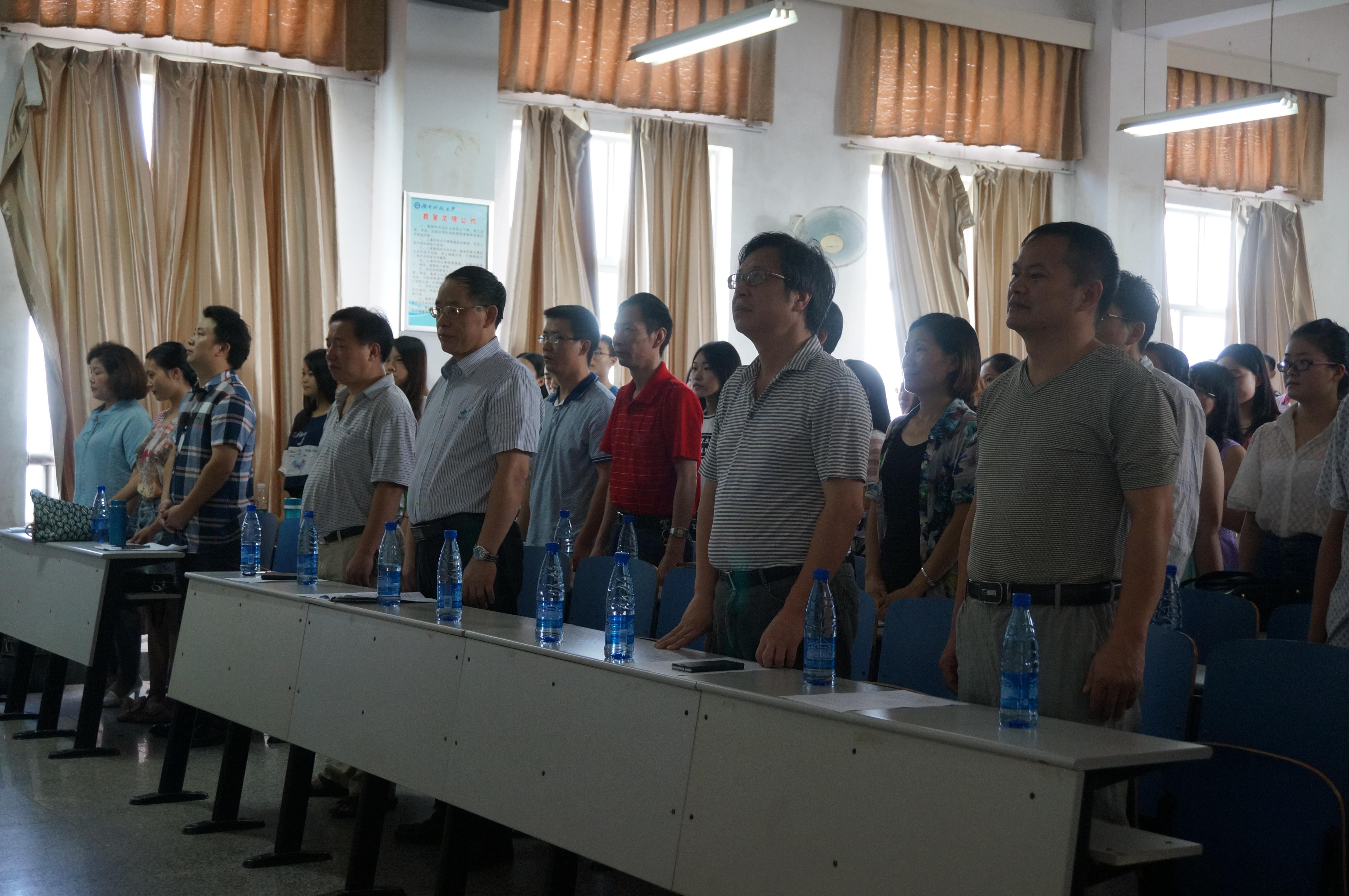 典礼伊始,全体起立,奏国歌。在庄严肃穆的国歌声后,教育学院院长陈春萍教授致迎新词,他详细介绍了学校及学院的基本情况,并指出:“作为一名研究生,探索教育知识,担当社会责任,是历史和社会赋予你们的神圣使命。我愿意和全体教职工一起引领大家领悟大学精神,开启人生智慧,学习科学知识。”强调指出“要想成为一名高水平的研究生,最重要的还是在于我们每一位研究生自己。需要你们自己去积极探索和不断创新。”同时在最后对研究生在未来三年或者两年半的学习生活给予了四点希望:“一是明确目标,全面领略大学的精神内涵。二是刻苦学习,潜心探索学问之道。三是勇于创新,不断攀登学术高峰。四是修身立格,自觉履行时代使命。”并且对其一一详细阐述,让学生们受益匪浅。导师代表谭千保博士认真畅谈环境、导师对人未来成长的重要性;老生代表赵红莉同学深度交流了研究生学习生活的经验与感悟;新生代表吴伟波同学也在激情地发言中勾勒自己出自己未来美好的研究生学习生活景图。最后,谭建平书记做总结发言,并预祝大家在读研期间工作学习愉快。