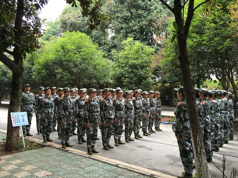 动员大会结束后,各排有秩序地离开田径场,回到相应的训练场地开始训练。教育学院的军训场地位于雕塑广场至第八教学楼之间的马路上,当同学们在教官带领下井然有序地回到训练场地时,院党委副书记王伟清教授、学生会主席团成员、各班助理班主任早已在那里等候大家的来临,各值班部门也已安排到位。