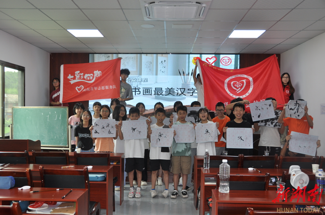 7月10日,湖南科技大学木槿感恩支教团在浏阳市枨冲镇新南桥村“FUN学营”开设了一堂别开生面的趣味书法课——“书画最美汉字”,带领当地小学六年级至初中二年级的学生们感受中华传统文化的独特魅力。