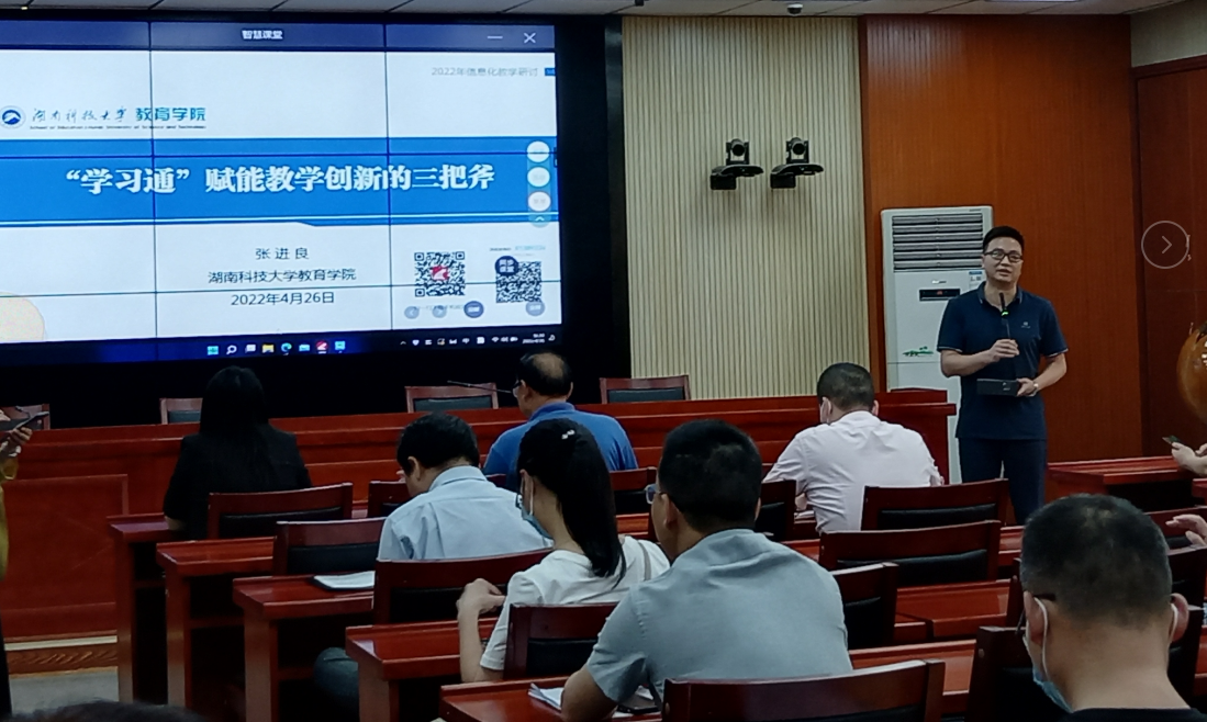 为提升教学信息化水平,促进课堂教学效果及课堂管理质量的改善,进一步加强老师们对“学习通”平台的了解,教育学院于4月26日下午在八教308会议室开展了面向全体教师的超星“一平三端”信息化教学技能提升培训。培训活动由教育学院副院长陈京军主持,教育学院张进良老师主讲,教务处挂职副处长彭剑、教育学院督导李建生老师、教务处俞永杰老师受邀参会。