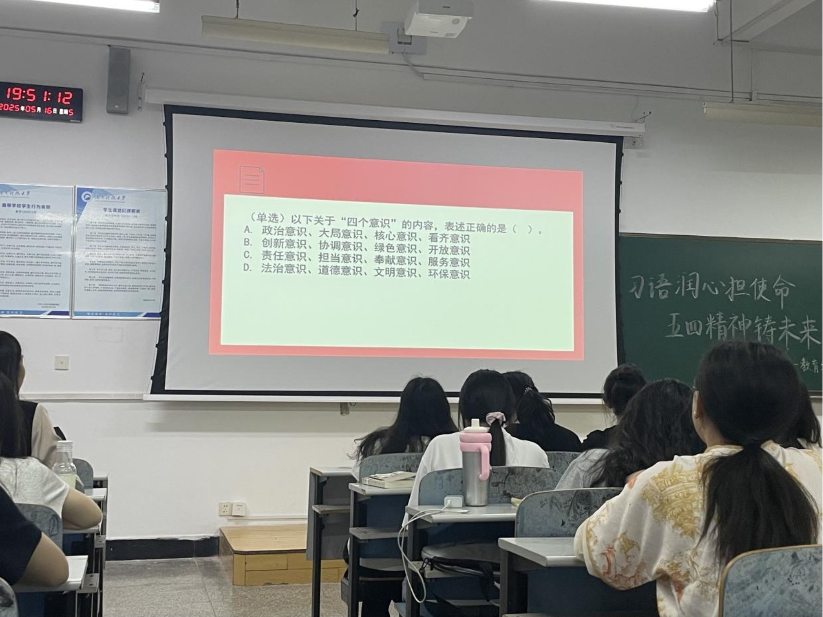 5月16日,教育学院第十四期第二次网络青马线下活动于第八教学楼C302举行,此次活动主题为“习语润心担使命,五四精神铸未来”。活动由周佳圆和李晓晴主持,教育学院第十四期青马培训班全体学员参加。