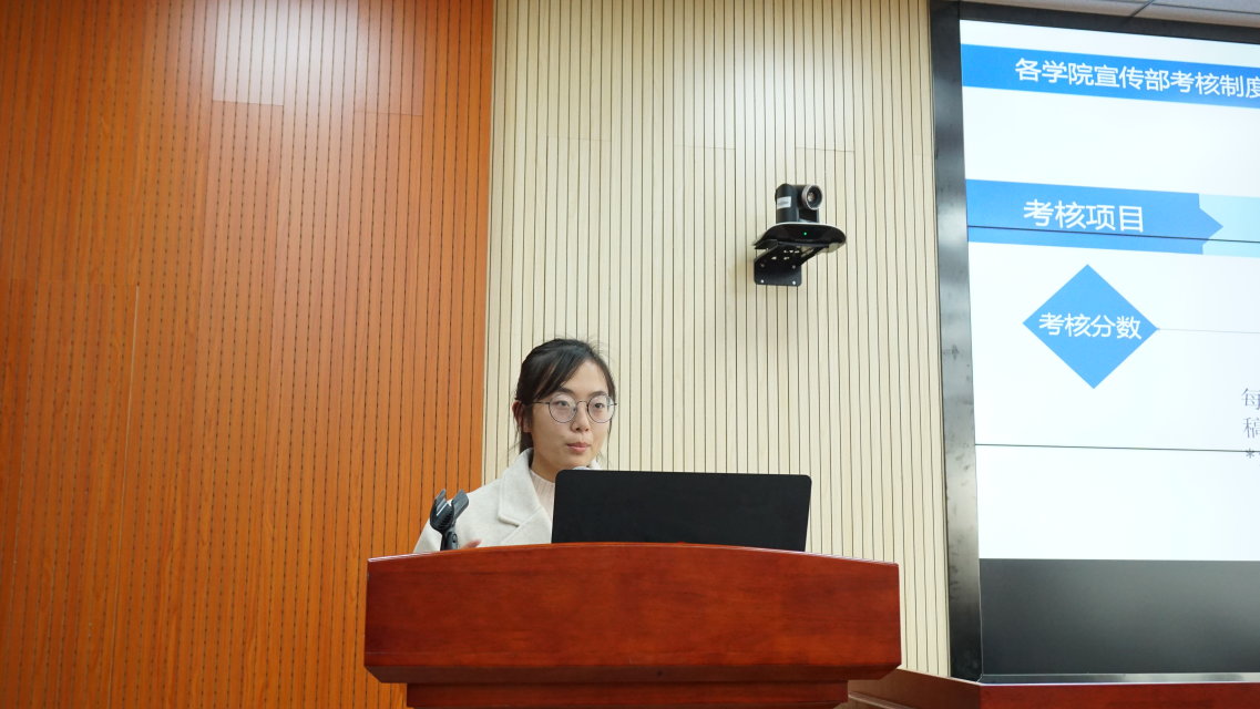 会议开始,刘辉亚着重强调了此次培训的目的是培养和提高同学们的新闻写作兴趣和质量,来更好地做好学院宣传报道工作。紧接着刘辉亚结合自身的经验在前期准备、信息采集、拍照摄像、撰写新闻、推送宣传等方面也做了进一步指导。他最后强调宣传工作不是一个部门的事,是学院所有部门的事,只有所有部门发挥力量,才能做好学院宣传报道工作。