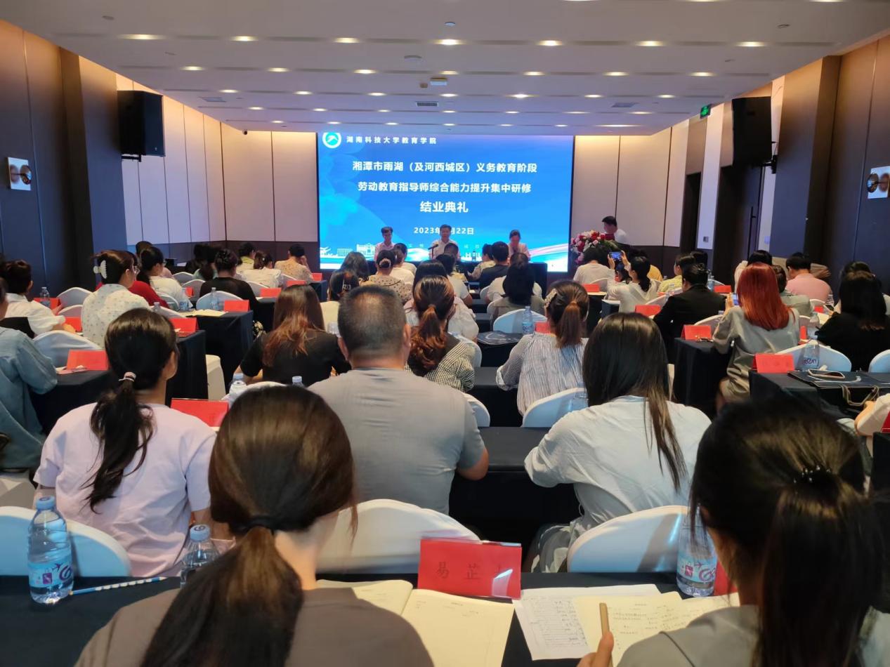 为深入贯彻落实党的二十大精神,落实落实立德树人根本任务,加强义务教育阶段教师队伍建设,促进基础教育高质量发展,湖南科技大学承办的湘潭市雨湖(及河西城区)义务教育阶段劳动教育指导师综合能力提升集中研修活动7月19日在湘潭市华美达广场酒店开班,为期4天,于7月22日结束,来自湘潭市雨湖(及河西城区)的70名教师通过专题报告、交流分享等形式圆满地完成了研修学习任务。雨湖区教研培训中心尹荣主任,湖南388vip太阳集团党委书记李炳煌教授出席结业仪式。李炳煌教授主持会议。