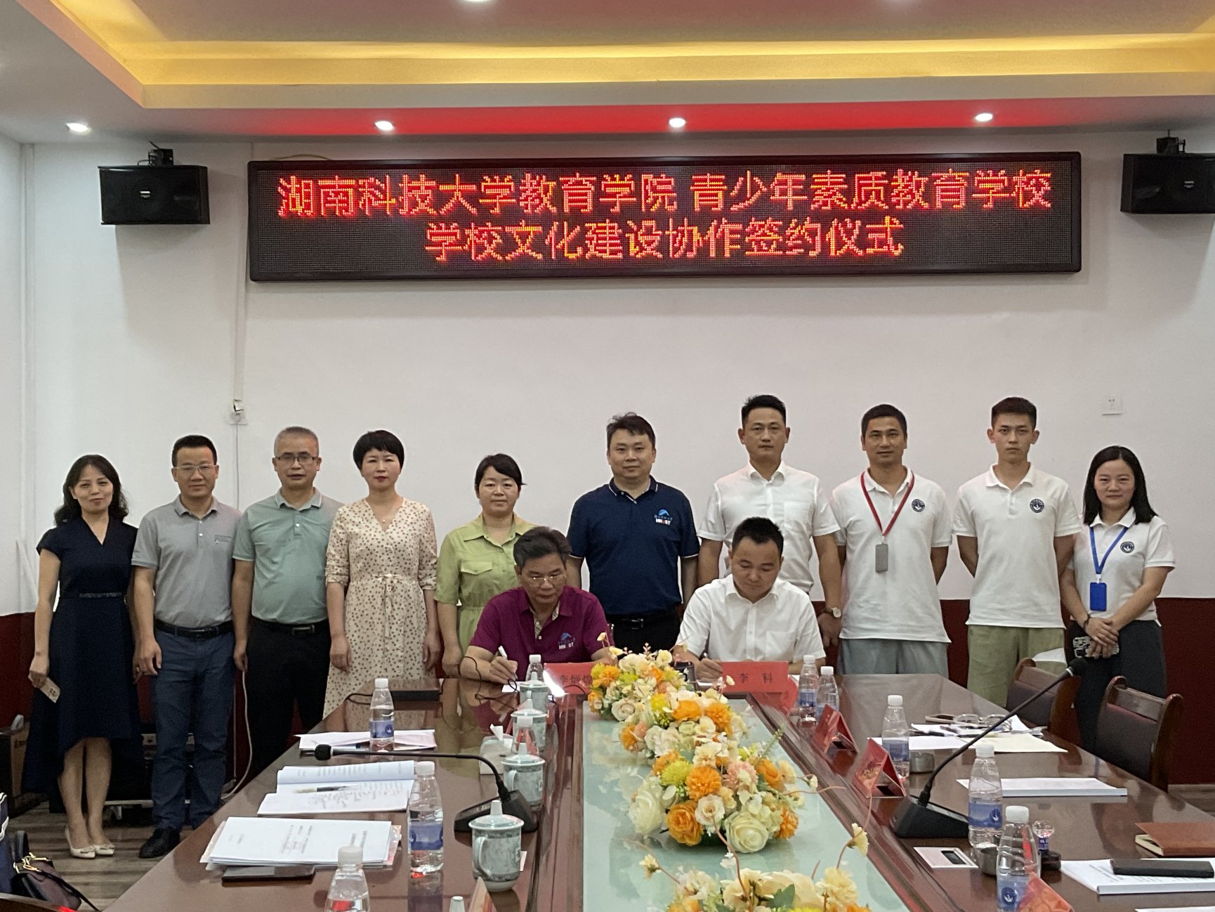 2022年8月3日,教育学院与岳塘区青少年素质教育培训学校文化建设签约仪式在岳塘区青少年素质教育培训学校举行。