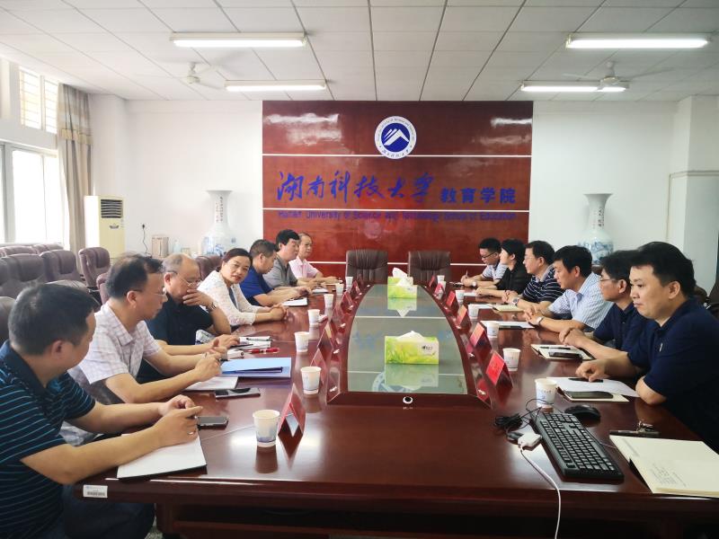 李海萍、李炳煌分别介绍了教育学院的学科建设、科学研究、实习实训、教育科研成果转化等工作,重点汇报了与湘潭市第一中学共建“全国教育硕士专业学位研究生联合培养示范基地”以及与湘潭市益智中学、湘潭县云龙中学、湘潭市雨湖区风车坪建元学校共建湖南科技大学“本硕一体”实践基地的具体情况。