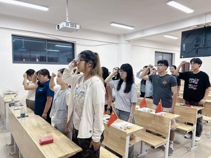 在罗江林同志的领誓下,全体党员庄严重温入党誓词。铮铮誓言激荡会场,字字铿锵,传递着对党的无限忠诚与坚定信仰。随后,支部书记罗江林与黄静老师共同为新党员郑重发放党员证。新当选的支部委员依次登台,现场发表就职报告。