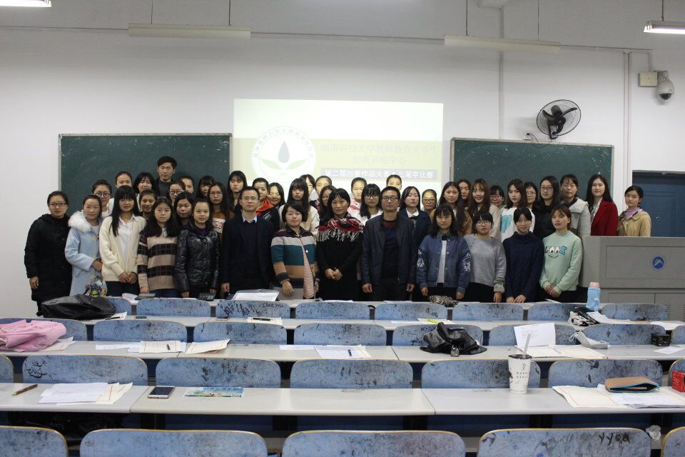 湖南科技大学教师教育大学生创新训练中心第二届创意作品大赛·三笔字比赛于2016年11月15日19:00在八教2-2教室顺利举行。本次三笔字比赛面向湖南科技大学的所有师范生,与往届相同,共设三项子赛事,分别为毛笔字比赛、钢笔字比赛以及粉笔字比赛。教育学院副院长陈慧青,教育学院冯青来、陈京军、张晓报、傅定涛等教师担任评委。此次比赛由教育学院教务办承办。