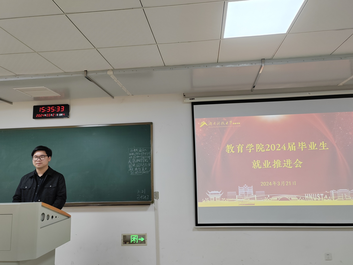 2024年3月21日,教育学院在敏行楼C412召开2024届毕业生就业推进会。会议由欧树宏老师主持。