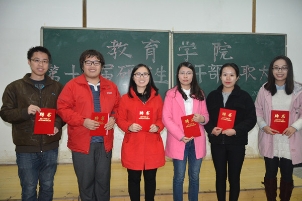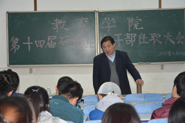 11月15日晚上7点,教育学院第十四届研究生会干部任职大会于八教1-3教室举行。我院党委副书记王伟清、研究生辅导员滕茜茜应邀出席,第十三届研究生会干部和2015级研究生到场参加本次大会,会议由教育学院第十四届研究生会副主席杜薇主持。