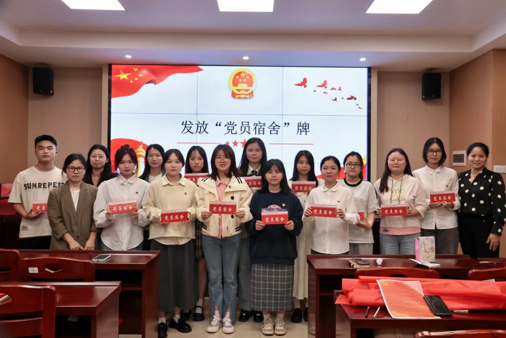 陈薪伊讲述宿舍文化建设心得。学生党员代表喻靖宣读《宿舍文明公约》,学生党员签订《教育学院学生党员〈宿舍文明公约承诺书〉》,文红梅为学生党员宿舍授牌。