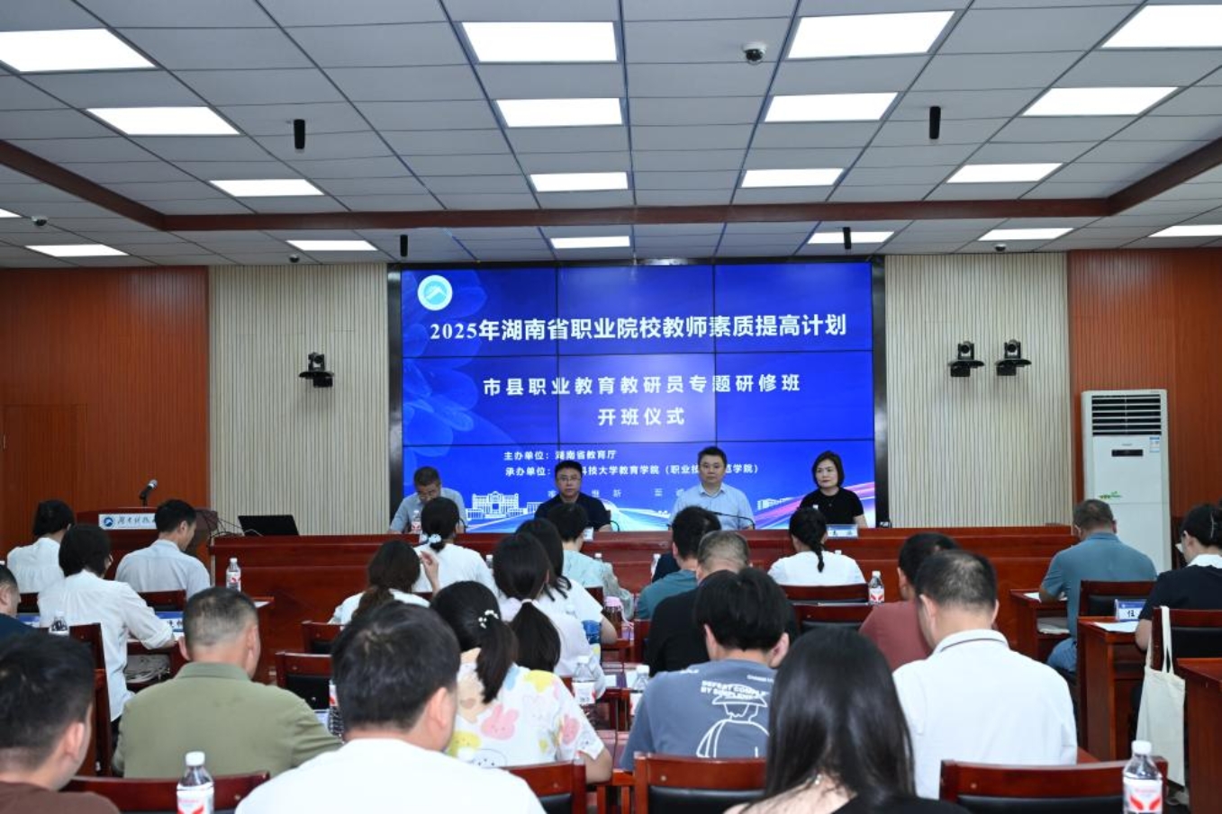 湖南388vip太阳集团于7月13日至18日成功承办了湖南省职业院校教师素质提高计划2025年省级培训项目——市县职业教育教研员专题研修班。本次培训系2025年湖南省职业院校教师素质提高计划的省级项目,学员来自全省50多个市县教育局、教育科学研究院及职业院校的60位教育管理骨干。湖南科技大学党委委员、纪委书记郭时印出席开班典礼并致辞,他介绍了湖南科技大学的办学历史与职业教育领域的办学优势,强调本次研修旨在提升教研员的专业素养与教研能力,为湖南省职业教育高质量发展注入新动能。
